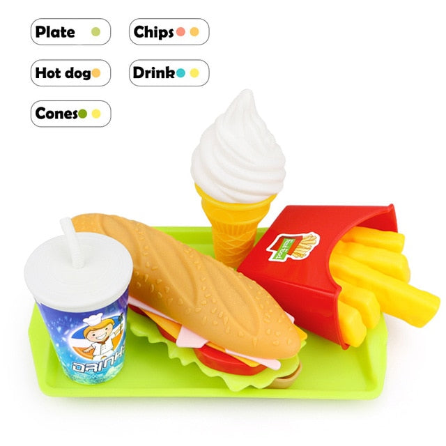 Children Simulation Food Hamburger Hotdog Kitchen Toy Set Pretend Play Miniature Snack Burger Educational Toys For Girl Kid